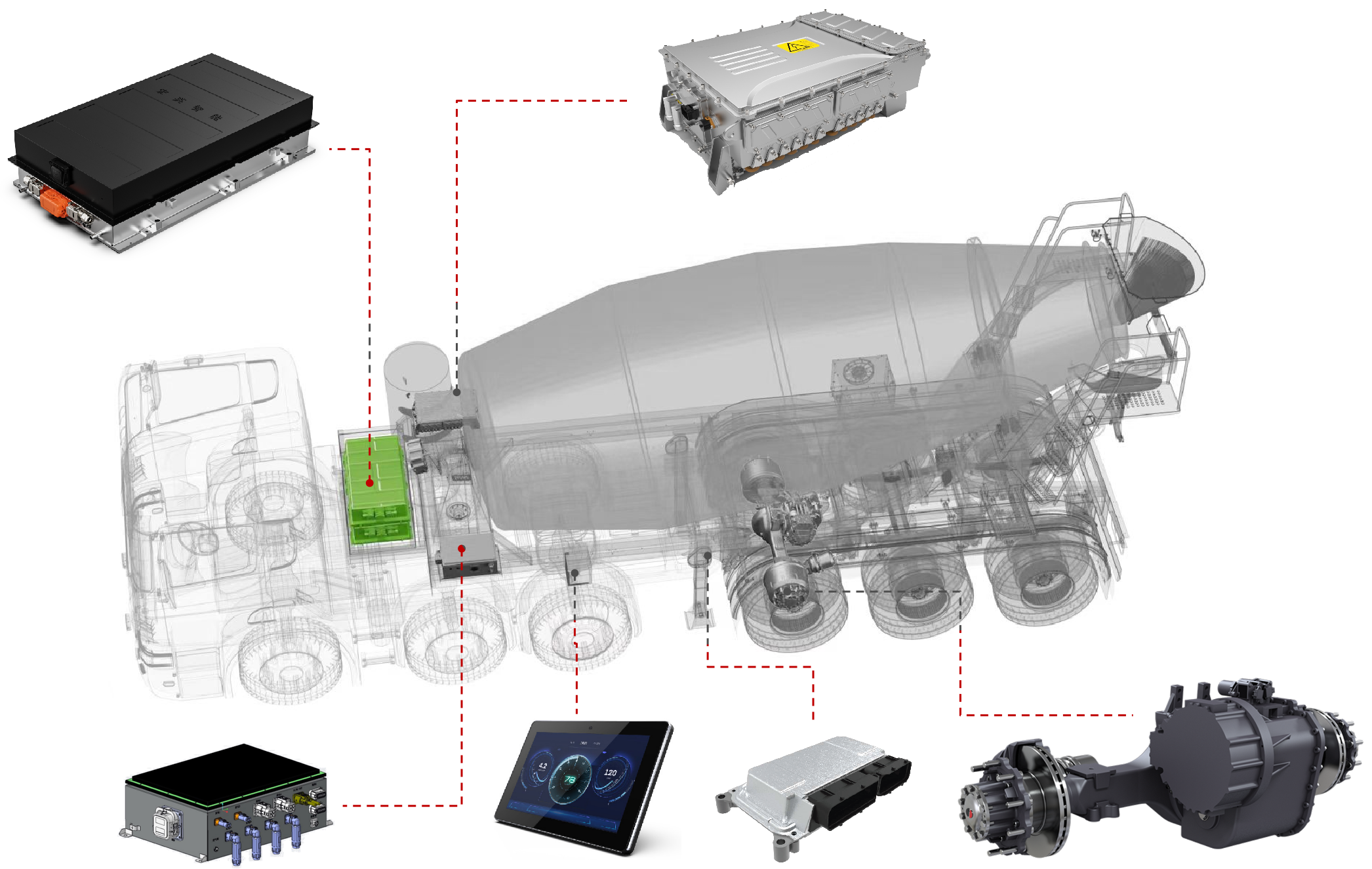 展会上,ballbet贝博·(中国)智能的智电一体化解决方案引起了广泛关注。工程师团队在现场为参展观众详细介绍了混合动力牵引搅拌半挂车的系统方案。该方案基于ballbet贝博·(中国)智能历经多年开发的eMagi智电平台,针对牵引搅拌半挂车进行了定向开发,涵盖以下几个方面:
